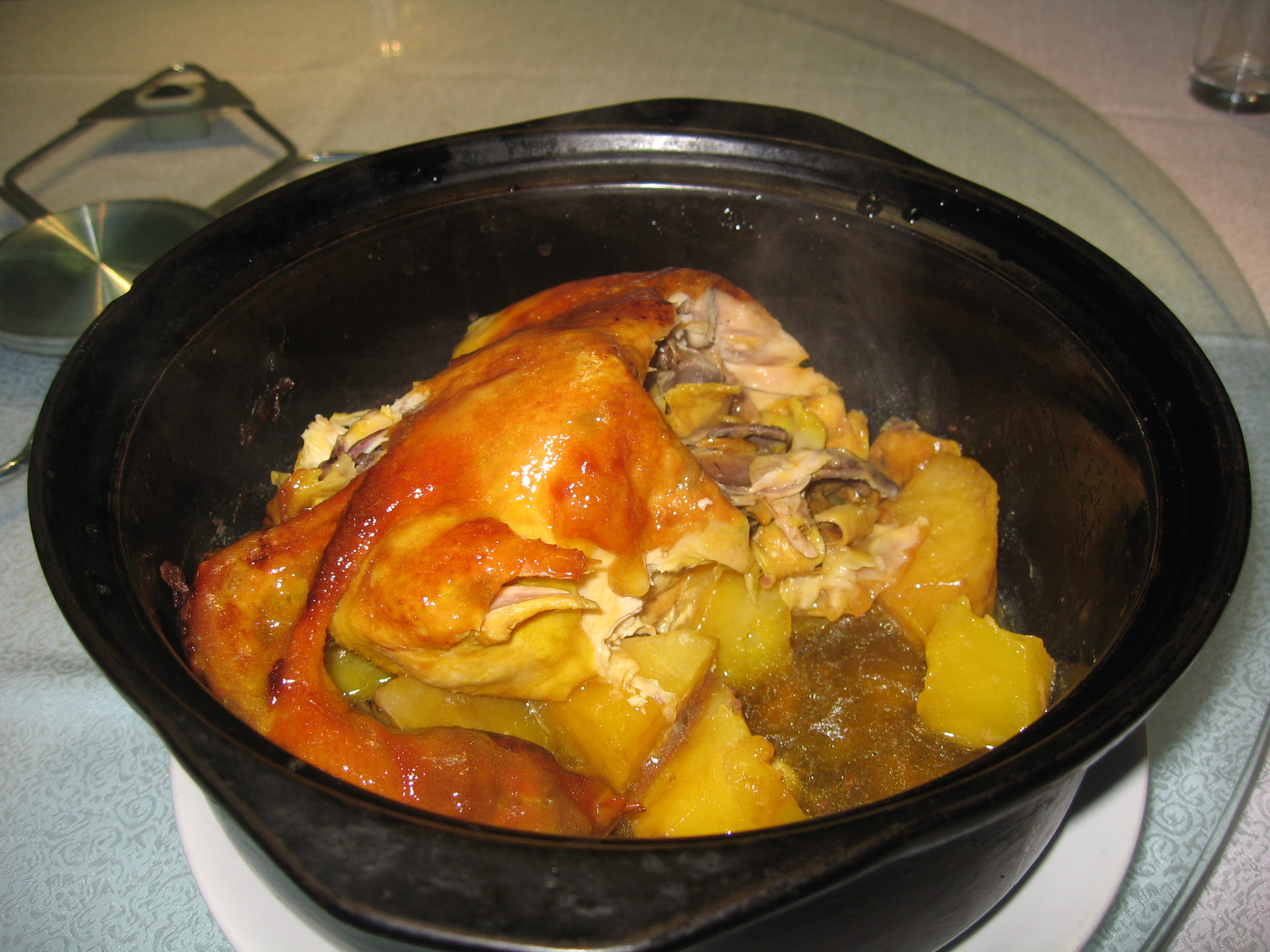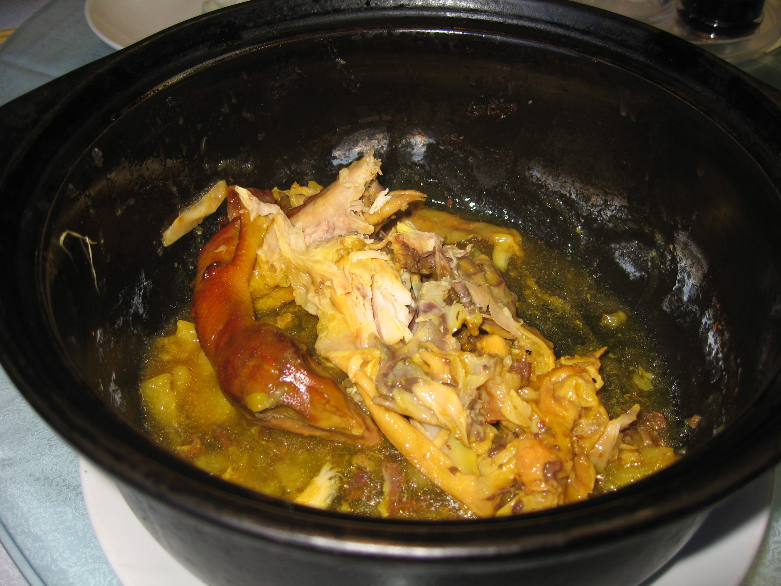 Gorgeous.! Probably the best chicken I have ever tested in China.! Steamed cooked in wonderfull tasty sauce and potatoes… Guess.! I know what to re-order next time.!