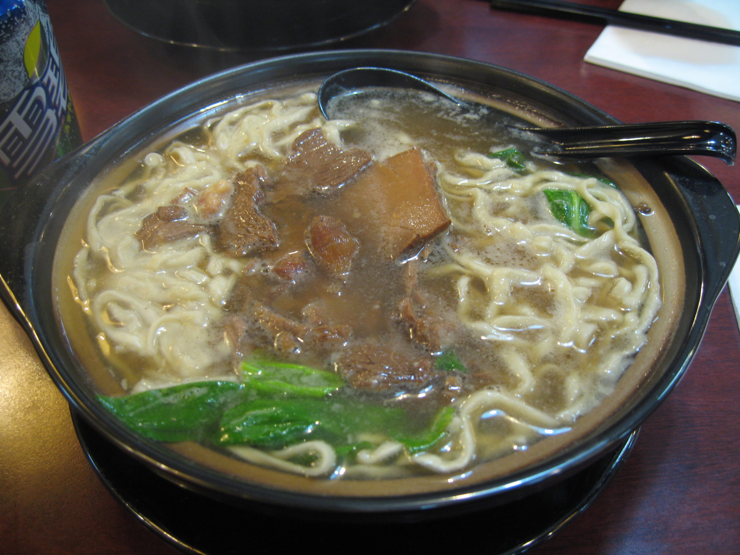 Beijing soupe with noodle and fresh make cube pastas. Served in wonderfull tasty sauce, with, meat, egg and vegetables.!